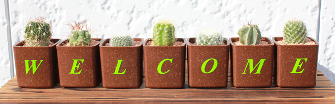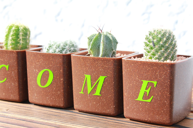 手乗りサイズのミニキューブが可愛いサボテンと多肉植物の住処になっています。